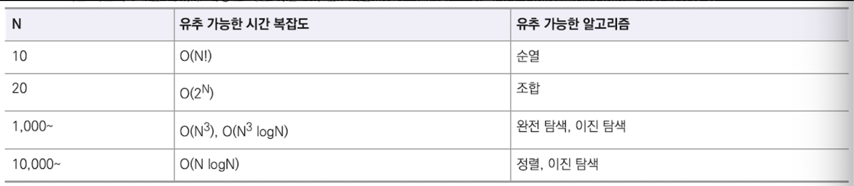 제한 시간이 1초일 때 유추 가능한 시간 복잡도와 알고리즘