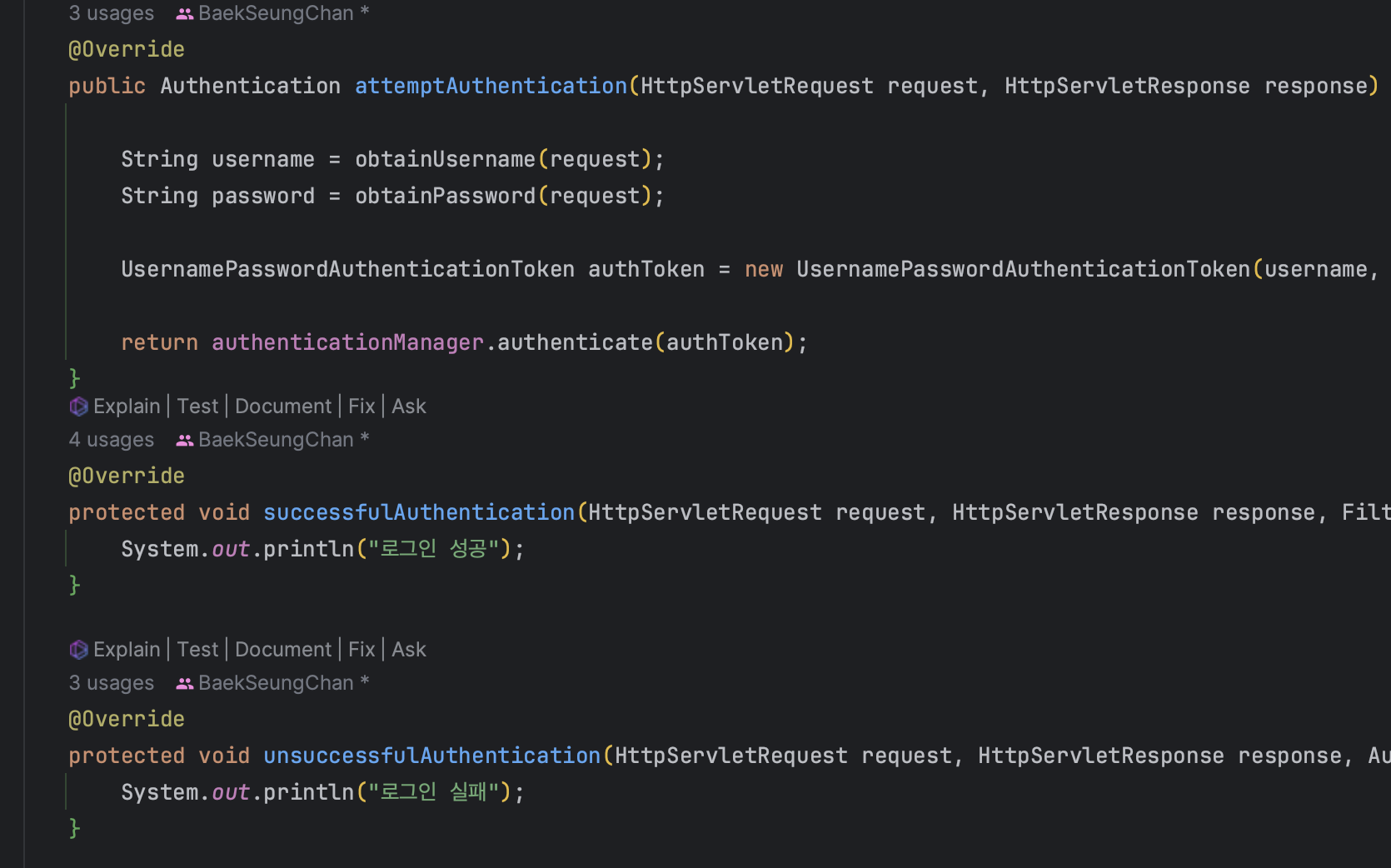 - SecurityConfig에서 커스텀 로그인 필터를 등록합니다.