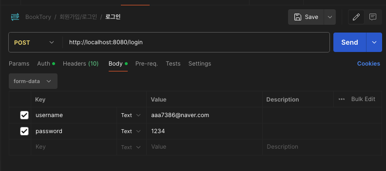 // 스프링 시큐리티에서 username과 password를 검증하기 위해 token에 담아야 함