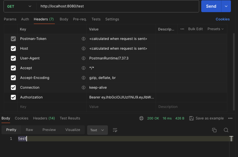 - 클라이언트는 요청을 보낼 때 JWT 토큰을 Authorization 헤더에 포함시킵니다.