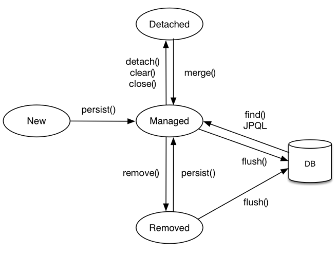 엔티티는 다음과 같은 생명주기를 가집니다:
