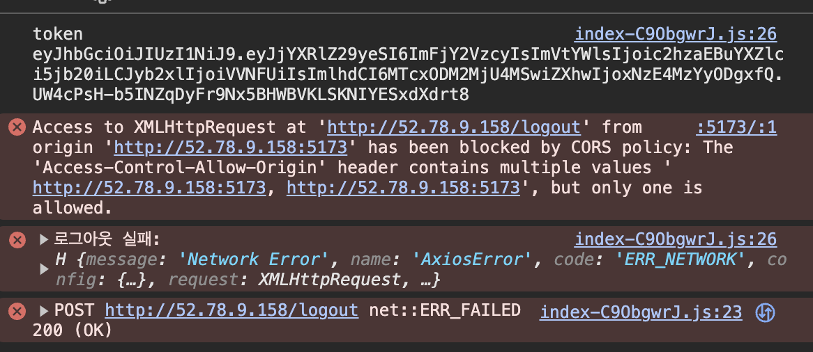 해당 오류는 CORS(Cross-Origin Resource Sharing) 정책과 관련된 문제입니다. 메시지에서 알 수 있듯이 Access-Control-Allow-Origin 헤더가 동일한 값이 중복되어 설정되었습니다. 이 문제는 Nginx 또는 Spring Boot 설정에서 중복된 CORS 설정으로 인해 발생합니다.