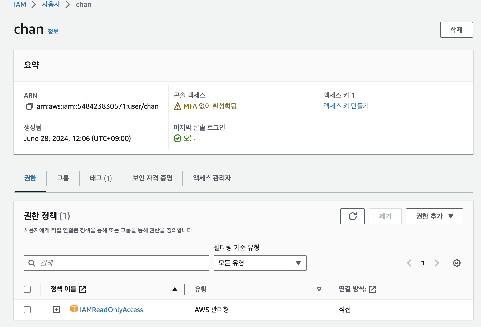 Root 계정에서 IAMReadOnlyAccess 권한 추가